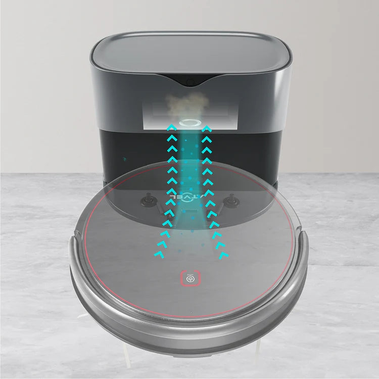 Die Dockingstation lädt nicht nur den Staubsauger auf, sondern leert auch automatisch den Staubbehälter, wodurch der einzige manuelle Reinigungsschritt entfällt. Der völlig autonome Atvel R80 lässt sich bequem täglich einschalten, da Sie keine Zeit mehr mit dem Reinigen des Behälters verschwenden müssen. Das Gerät verhindert, dass Staub mit der Luft in Kontakt kommt und in die Wohnung zurückgelangt, wie dies beim manuellen Ausschütteln des Behälters geschieht. Mit der selbstreinigenden Station können Sie die Unterhaltsreinigung häufiger durchführen, weniger Zeit aufwenden und das Haus sauberer halten.