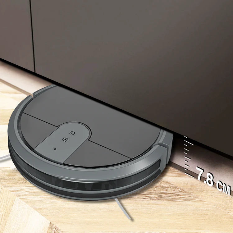 Aufgrund der geringen Gehäusehöhe (78 mm) ist der Roboter in der Lage, unter niedrigen Möbeln hindurchzufahren. Das bedeutet, dass er unter Betten, Nachttischen usw. reinigen kann.