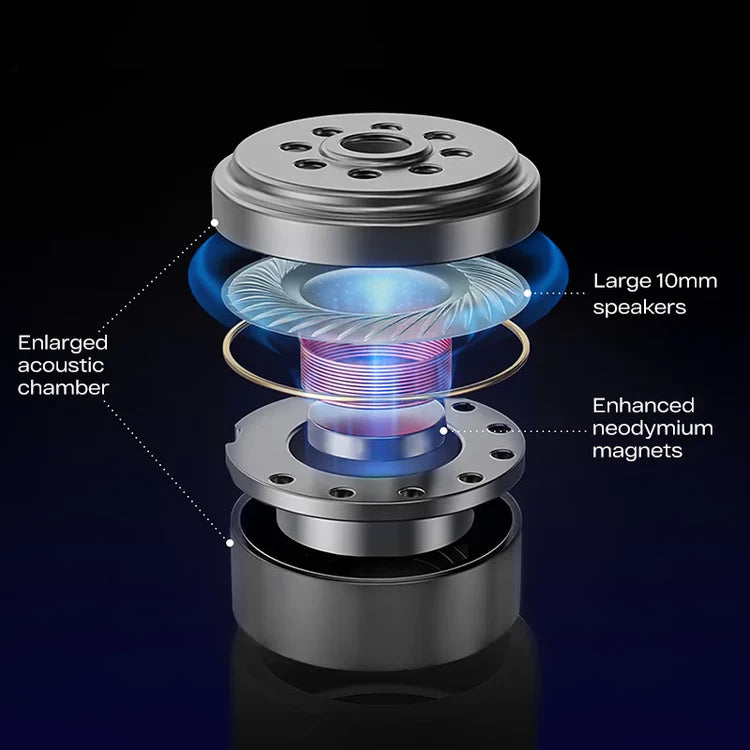 Mit einer größeren Akustikkammer, verstärkten Neodym-Magneten und großen 10-mm-Treibern liefert Atvel Tune S5 Pro kraftvollen Surround-Sound und satte, tiefe Bässe.